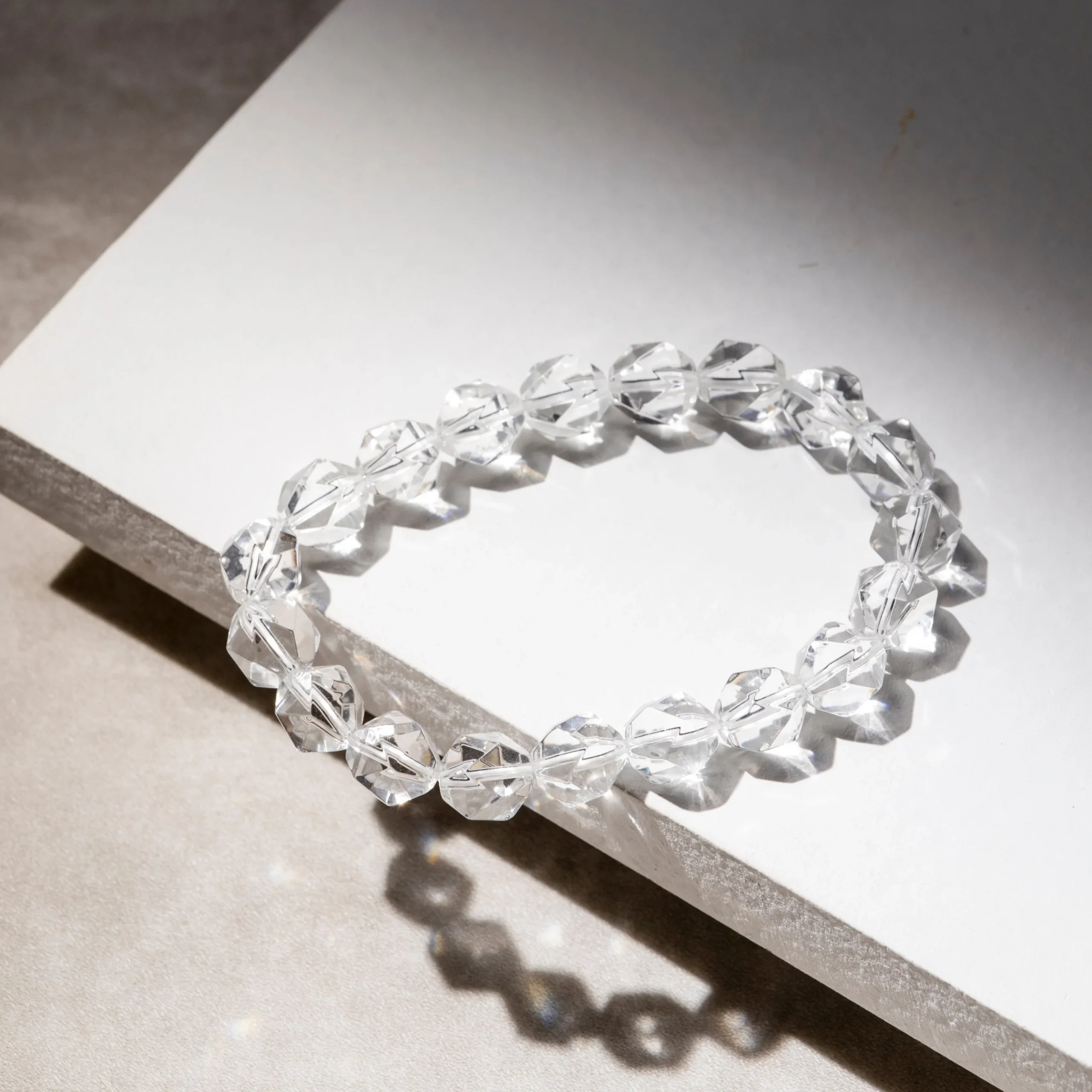白水晶 (Clear Quartz) 被譽為「水晶之王」,擁有最純粹、強大的淨化能量。Montagne 採用精緻的鑽石切角工藝,讓透亮如冰的白水晶隨著手腕擺動,折射出耀眼的光芒,猶如隨身攜帶一道純淨的晨光。 這是一條極簡百搭、不分性別的能量輕珠寶,不僅能提升日常穿搭的質感,更是陪伴您保持清晰思緒、安定內心的能量守護者。